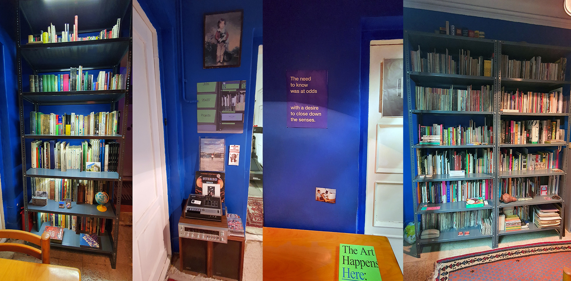 The Blue Room is the heart and soul of the apartment. The Blue Room holds the Blue Room Library.