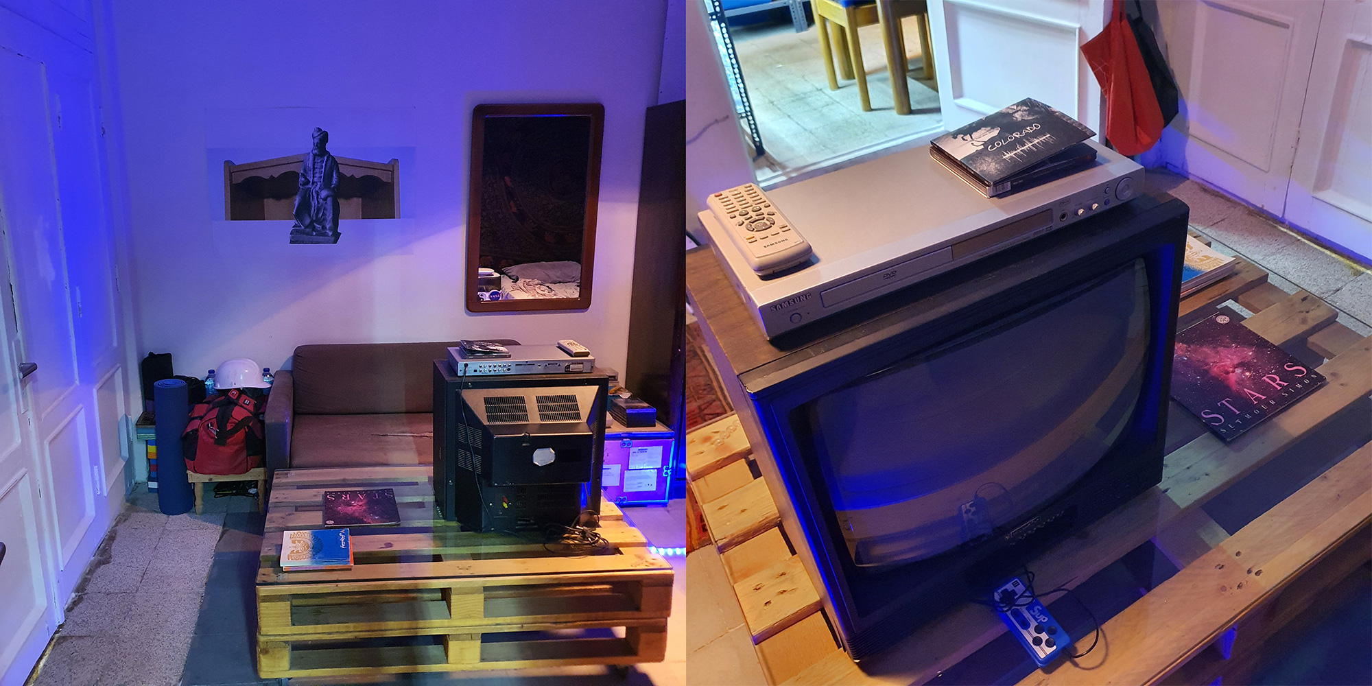Since 2008, I have used my apartments as spaces for exhibiting contemporary art and as art residencies (Sazmanab). For the run of the project, Jon and I operated Sazmanab together in The Other Apartment (as Sazmanab ⧚ Water Dept.), producing exhibitions, programs, and events where every object, video, and performance that happened in one space was reproduced for the other, keeping both apartments identical across the 6,300 miles that separated them.